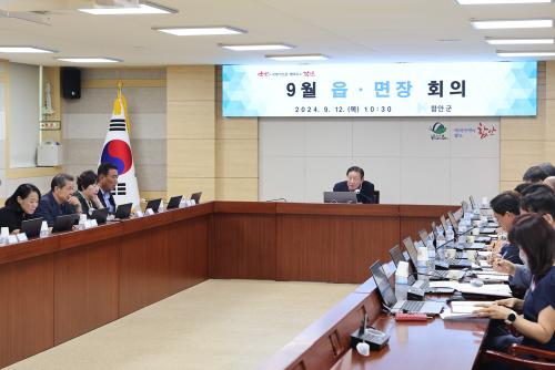 [½Åµ¿¾Æ¹æ¼Û=ÀÌ¿ø¼º±âÀÚ] ÇԾȱºÀº 12ÀÏ ÇԾȱºÃ» º°°ü 3Ãþ ÁßȸÀǽǿ¡¼­ Á¶±ÙÁ¦ ÇԾȱº¼ö ÁÖÀç·Î 2024³â 9¿ù À¾¸éÀå ȸÀǸ¦ °³ÃÖÇß´Ù. À̳¯ ȸÀÇ´Â À¾¸é°úÀÇ Çù¾÷ ¹× ÇùÁ¶ »çÇ×ÀÌ ÀÖ´Â ºÎ¼­ÀåÀÌ Âü¼®ÇØ Áֹεî·Ï »ç½ÇÁ¶»ç ¹æ¹®Á¶»ç, Á¤±âºÐ Àç»ê¼¼, Áֹμ¼ ³³ºÎ, Å롦