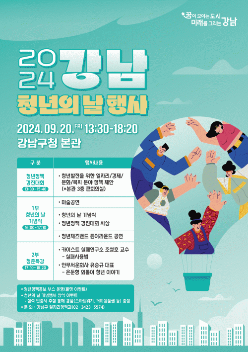[½Åµ¿¾Æ¹æ¼Û=ÀÌ¿ø¼º±âÀÚ] °­³²±¸(±¸Ã»Àå Á¶¼º¸í)°¡ ¿À´Â 20ÀÏ 16½ÃºÎÅÍ 18½Ã 20ºÐ±îÁö ±¸Ã» º»°ü 1Ãþ ·Îºñ¿¡¼­ ¡®2024 °­³² û³âÀÇ ³¯ Çà»ç¡¯¸¦ °³ÃÖÇÑ´Ù. û³âÀÇ ±Ç¸®º¸Àå ¹× Ã»³â¹ßÀüÀÇ Á߿伺À» ¾Ë¸®°í, û³â¹®Á¦¿¡ ´ëÇÑ °ü½ÉÀ» ³ôÀ̰íÀÚ 2020³âºÎÅÍ ¸Å³â 9¿ù ¼¼ ¡¦