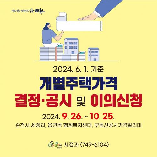 [½Åµ¿¾Æ¹æ¼Û ¼øÃµ=±è³²±â ±âÀÚ] ¼øÃµ½Ã(½ÃÀå ³ë°ü±Ô)´Â ¿ÃÇØ 6¿ù 1ÀÏ ±âÁØ °³º°ÁÖÅð¡°ÝÀ» 9¿ù 26ÀÏÀÚ·Î °áÁ¤¡¤°ø½ÃÇϰí, ¿À´Â 10¿ù 25ÀϱîÁö ÀÌÀǽÅûÀ» ¹Þ´Â´Ù°í ¹àÇû´Ù. ´ë»óÀº ¿ÃÇØ 1¿ù 1ÀϺÎÅÍ 5¿ù 31ÀϱîÁö ½ÅÃà, ÁõÃà, ÅäÁöºÐÇÒ ¹× ÇÕº´ µî º¯µ¿»çÇ×ÀÌ ÀÖ´Â ¡¦