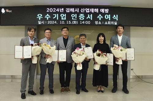 <@1> [½Åµ¿¾Æ¹æ¼Û=³²±Ã¿µ±â ±âÀÚ] ±èÇØ½Ã(½ÃÀå ȫſë)´Â 15ÀÏ ½Ãû ¼ÒȸÀǽǿ¡¼­ 2024³â »ê¾÷ÀçÇØ ¿¹¹æ ¿ì¼ö±â¾÷¿¡ ´ëÇÑ ÀÎÁõ¼­ ¼ö¿©½ÄÀ» °³ÃÖÇß´Ù. ÀÎÁõ±â¾÷Àº ¸ðµÎ 5°³»ç·Î ¢ßÇÑ¶ó°ø¾÷, ¢ß³×¿ÀÅ×Å©, Á¦ÀÌ¿¤ÆÑ, °æ¿øº¥ÅØ(ÁÖ), ¢ß±Ý·ûÀÌ¿£ÁöÀÌ´Ù. °æ³² ½Ã¡¤±º¡¦