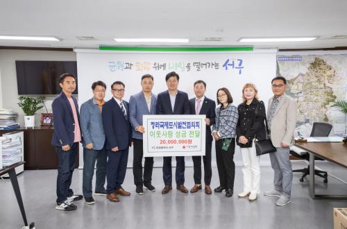 [½Åµ¿¾Æ¹æ¼Û ÀÎõ= À±¹Î½Ä±âÀÚ] ÀÎõ ¼­±¸(±¸Ã»Àå °­¹ü¼®)´Â 10¿ù 17ÀÏ, û¶ó±¹Á¦µµ½Ã¹ßÀüÇùÀÇȸ(ȸÀå ±èÀÏÅÂ)·ÎºÎÅÍ ÀÌ¿ôµ½±â ¼º±Ý 2,000¸¸¿øÀ» Àü´Þ¹Þ¾Ò´Ù. û¶ó±¹Á¦µµ½Ã¹ßÀüÇùÀÇȸ´Â û¶ó±¹Á¦µµ½Ã¿¡ ÁÖ¼Ò¸¦ µÐ ±â¾÷ü³ª ÀÚ¿µ¾÷À¸·Î ±¸¼ºµÈ ¸ðÀÓÀ¸·Î, ¸Å³â ¼­¡¦