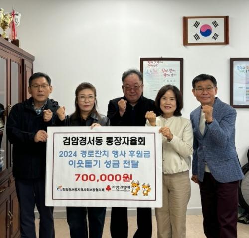 [½Åµ¿¾Æ¹æ¼Û ÀÎõ= À±¹Î½Ä±âÀÚ] ÀÎõ ¼­±¸ °Ë¾Ï°æ¼­µ¿(µ¿Àå ½Åµ¿¼±)Àº Áö³­ 21ÀÏ ÅëÀåÀÚÀ²È¸(ȸÀå ±è¿ëºÀ)°¡ ÇàÁ¤º¹Áö¼¾ÅÍ ³» ¸ÂÃãÇü º¹ÁöÆÀ¿¡ ÈÄ¿ø±Ý 70¸¸ ¿øÀ» Àü´ÞÇß´Ù°í ¹àÇû´Ù. À̳¯ Àü´Þ½Ä¿¡´Â ÅëÀåÀÚÀ²È¸ ȸÀåÀ» ºñ·ÔÇÑ °ü°èÀÚµéÀÌ Âü¼®Çß´Ù. À̳¯ Àü´ÞµÈ¡¦