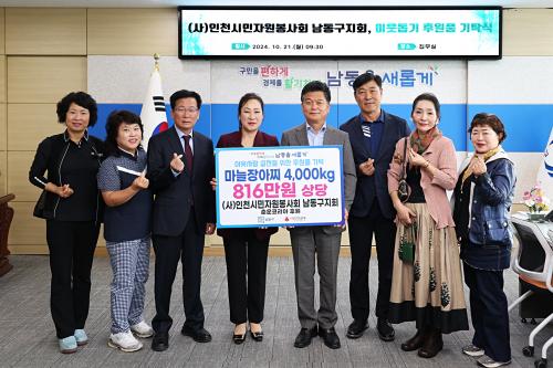 [½Åµ¿¾Æ¹æ¼Û ÀÎõ= À±¹Î½Ä±âÀÚ] ÀÎõ½Ã ³²µ¿±¸´Â (»ç)ÀÎõ½Ã¹ÎÀÚ¿øºÀ»çȸ ³²µ¿±¸Áöȸ·ÎºÎÅÍ ÀÌ¿ôµ½±â ÈÄ¿øÇ° ¸¶´ÃÀ徯Âî 4,000kg(816¸¸ ¿ø »ó´ç)À» ±âŹ¹Þ¾Ò´Ù°í 23ÀÏ ¹àÇû´Ù. À̹ø¿¡ ±âʹÞÀº ¸¶´ÃÀ徯Âî´Â ÀÎõ»çȸº¹Áö°øµ¿¸ð±Ýȸ¸¦ ÅëÇØ ³²µ¿±¸ ³» »çȸº¹Áö ½Ã¡¦