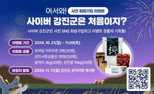 [½Åµ¿¾Æ¹æ¼ÛÀü³²°­Áø=¹Ú±¤¿Á±âÀÚ] °­Áø±ºÀÌ '»çÀ̹ö °­Áø±º¹Î' Á¦µµÀÇ º»°ÝÀûÀÎ ½ÃÇàÀ» ¾ÕµÎ°í, 10¿ù 21ÀϺÎÅÍ 11¿ù 9ÀϱîÁö »çÀü ȸ¿ø°¡ÀÔ À̺¥Æ®¸¦ ÁøÇàÇÑ´Ù. '»çÀ̹ö °­Áø±º¹Î'À̶õ °­Áø±º¿¡ °ü½É ÀÖ´Â ³²³à³ë¼Ò ´©±¸¶óµµ ÀÎÅͳݻ󿡼­ »çÀ̹ö °­Áø±º¹ÎÀ¸·Î µî·Ï¡¦