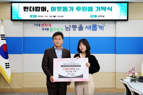 [½Åµ¿¾Æ¹æ¼Û ÀÎõ= À±¹Î½Ä±âÀÚ] ÀÎõ½Ã ³²µ¿±¸´Â û³ââ¾÷Áö¿ø¼¾ÅÍ ÀÔÁÖ Ã»³â±â¾÷ÀÎ ¡®ÆÝ´õį¸Ó¡¯·ÎºÎÅÍ Ãë¾à°èÃþ ¿©¼ºÀ» À§ÇÑ ¹°Ç°À» ±âŹ¹Þ¾Ò´Ù°í 28ÀÏ ÀüÇß´Ù. ³²µ¿±¸ û³ââ¾÷Áö¿ø¼¾ÅÍ ÀÔÁÖ±â¾÷ÀÎ ¡®ÆÝ´õį¸Ó¡¯´Â ÀÚü ºê·£µå ¡®¾Æºí·Î¿¡¡¯¶ó´Â ¿©¼ºÀÇ·ù¿Í ¾ð¡¦