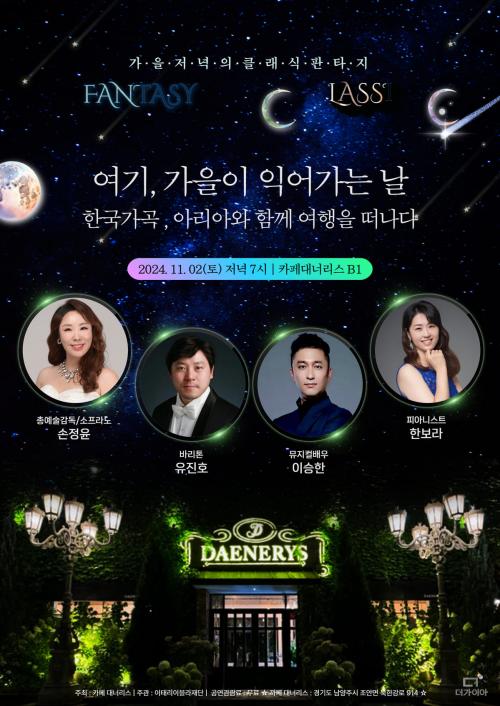 [½Åµ¿¾Æ¹æ¼Û = ½Å°æ½Ä ±âÀÚ] ¿À´Â 11¿ù 2ÀÏ Åä¿äÀÏ Àú³á 7½Ã, ³²¾çÁֽà ºÏÇѰ­·Î¿¡ À§Ä¡ÇÑ Ä«Æä ´ë³Ê¸®½º¿¡¼­ ¼ÒÇÁ¶ó³ë ¼ÕÁ¤À±ÀÇ Æ¯º°ÇÑ °¡À» À½¾Çȸ ¡®°¡À»ÀÌ À;´Â ³¯¡¯ÀÌ ¿­¸°´Ù. °¡À»À» ¸ÂÀÌÇØ ¼º¾Ç°¡µé°ú ÇÔ²²ÇÏ´Â À̹ø À½¾Çȸ´Â ¼±¼±ÇÑ °¡À»¹Ù¶÷°ú ÇÔ²² Ź ¡¦