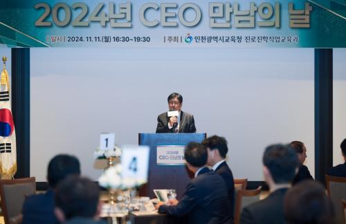[½Åµ¿¾Æ¹æ¼Û ÀÎõ= À±¹Î½Ä±âÀÚ] µµ¼ºÈÆ ÀÎõ±¤¿ª½Ã±³À°°¨Àº 11ÀÏ ¼Ûµµ ¼¾Æ®·²ÆÄũȣÅÚ¿¡¼­ ¿­¸° ¡®2024 CEO ¸¸³²ÀÇ ³¯¡¯ Çà»ç¿¡ Âü¼®ÇØ 30°³ ±â¾÷ÀÇ ´ëÇ¥, 30¸íÀÇ Á÷¾÷°è°í ±³Àå, ³ë¹«»ç µî°ú ÇÔ²² Á÷¾÷°è°í ±³À° ¹ßÀü ¹æÇâÀ» ³íÀÇÇß´Ù. µµ¼ºÈÆ ±³À°°¨Àº ¡°±â¾÷Àº¡¦