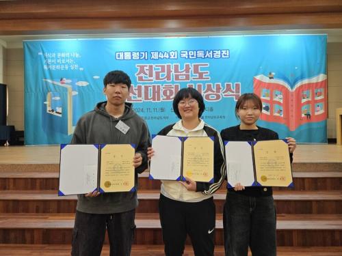 [½Åµ¿¾Æ¹æ¼Û ¿µ±¤±º=À̽ŵ¿±âÀÚ] ¿µ»ê¼ºÁö°íµîÇб³°¡ ´ëÅë·É±â Á¦44ȸ ±¹¹Îµ¶¼­°æÁø Àü¶ó³²µµ ¿¹¼±´ëȸ¿¡¼­ µ¶Èݨ ´Üü °íµîºÎ ÃÖ¿ì¼ö»óÀ» ¼ö»óÇß´Ù. »õ¸¶À»¹®°íÀü¶ó³²µµÁöºÎ°¡ ÁÖ°üÇÏ´Â º» ´ëȸ´Â Áö½Ä°ú ¹®È­ÀÇ ³ª´®, ±âº»ÀÌ ¹Ù·Î ¼­´Â, µ¶¼­¹®È­¿îµ¿ ½ÇõÀ» ±âÁ¶·Î ¡¦