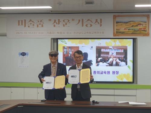 [½Åµ¿¾Æ¹æ¼Û Àü³²=À̽ŵ¿±âÀÚ] Àü¶ó³²µµ±³À°Ã»±³À°¿¬¼ö¿øÀº Áö³­ 11¿ù 13ÀÏ ¿ÀÈÄ 2½Ã Á¦4´ë ¹ÚÁ¤¼ö Àü ÃæÀDZ³À°¿ø ¿øÀå(1991. 9. 1. ~ 1995. 8. 31.)À¸·ÎºÎÅÍ ¿¹¼úǰ(Çѱ¹È­)À» ±âÁõ¹Þ¾Æ ¿¬¼ö¿ø »çµµ°¢ 1Ãþ ÇùÀǽǿ¡¼­ ±âÁõ Çà»ç¸¦ ½Ç½ÃÇÏ¿´´Ù. À̹ø ±âÁõµÈ ¿¹¼ú¡¦
