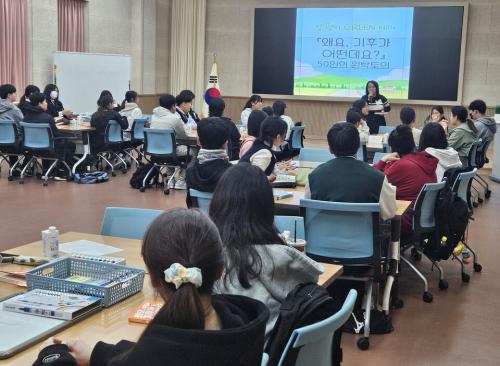 [½Åµ¿¾Æ¹æ¼Û ÇÔÆò±º=À̽ŵ¿±âÀÚ] ÇÔÆò±³À°Áö¿øÃ»Àº 11¿ù 14ÀÏ, ÇÔÆò±³À°Áö¿øÃ» 3Ãþ ÁßȸÀǽǿ¡¼­ ±âÈÄÀ§±â ´ëÀÀ ±³À°ÀÇ ÀÏȯÀ¸·Î ÃʵîÇб³ 6Çгâ, ÁßÇб³ 1Çгâ Çлý 50¿©¸íÀÌ Âü¿©ÇÑ °¡¿îµ¥ ÇÔ±×·¡ (ÇÔÆò Green ¹Ì·¡) ź¼Ò¹ßÀÚ±¹À» ÁÙÀÌ´Â ¡º50ÀÎ ¿øÅ¹ÅäÀÇ¡»¸¦ ¼ºÈ²¸®¿¡¡¦