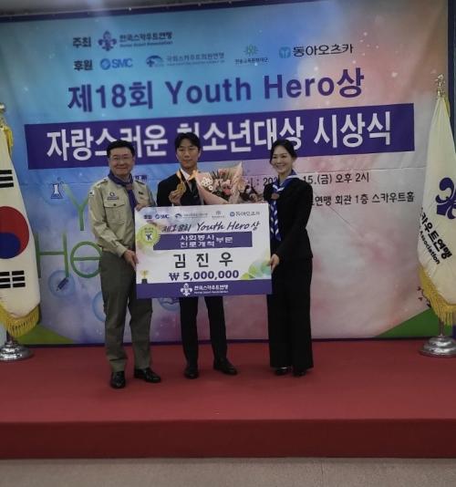 [½Åµ¿¾Æ¹æ¼Û ÀåÈﱺ=À̽ŵ¿±âÀÚ] Àü³² ÀåÈï Àü³²¹Ì·¡ÀÚµ¿Â÷°íµîÇб³(±³Àå ¹Ú¹Ì¿Á) 2020³â Á¹¾÷»ýÀÎ ±èÁø¿ì ±ºÀÌ Á¦18ȸ 'Youth Hero' »óÀ» ¼ö»óÇß´Ù. ½Ã»ó½ÄÀº 11¿ù 15ÀÏ ¿ÀÈÄ 2½Ã ¼­¿ï ¿©Àǵµ Çѱ¹½ºÄ«¿ìÆ®¿¬¸Íȸ°ü¿¡¼­ ¿­·ÈÀ¸¸ç, ±è ±º¿¡°Ô´Â »ó±Ý 500¸¸ ¿ø°ú ¸Þ´Þ, Áõ¡¦
