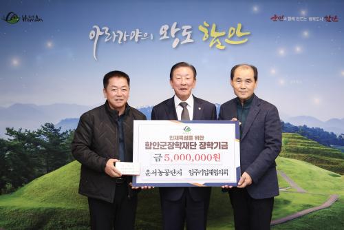 ÇԾȱº Ä¥¿ø¿î¼­³ó°ø´ÜÁö ÀÔÁÖ±â¾÷üÇùÀÇȸ, ÇԾȱºÀåÇÐÀç´Ü¿¡ ÀåÇбâ±Ý 500¸¸ ¿ø ±âŹ