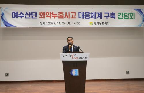 [½Åµ¿¾Æ¹æ¼ÛÀü³²¿©¼ö=±è±â³² ±âÀÚ] Àü³²µµÀÇȸ ¾ÈÀü°Ç¼³¼Ò¹æÀ§¿øÈ¸ ÃÖ¹«°æ ÀÇ¿ø(´õºÒ¾î¹ÎÁÖ´ç, ¿©¼ö4)Àº Áö³­ 11¿ù 26ÀÏ, ¿©¼ö»ó°øÈ¸ÀÇ¼Ò ´ëȸÀǽǿ¡¼­ ¡®¿©¼ö»ê´Ü È­Çд©Ãâ»ç°í ´ëÀÀü°è ±¸Ãà °£´ãȸ¡¯¸¦ °³ÃÖÇß´Ù. À̳¯ °£´ãȸ´Â, ÃÖ±Ù ÀÕ´Þ¾Æ ¹ß»ýÇÏ´Â È­Çй°¡¦