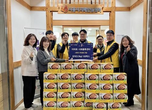 [½Åµ¿¾Æ¹æ¼Û ½ÃÈï½Ã=À̽ŵ¿±âÀÚ] À̸¶Æ® ½ÃÈ­¹°·ù¼¾ÅÍ ºÀ»ç´ÜÀº Áö³­ 27ÀÏ ½ÃÈï½Ã1%º¹ÁöÀç´ÜÀ» ÅëÇØ ½ÃÈï½ÃÄ¡¸Å¾È½É¼¾ÅÍ¿¡ µî·ÏµÈ Ä¡¸Å ¾î¸£½Åµé¿¡°Ô ÀüÇØ ´Þ¶ó¸ç ±èÄ¡(3.5kg) 100¹Ú½º¸¦ ÈÄ¿øÇß´Ù. À̸¶Æ® ½ÃÈ­¹°·ù¼¾ÅÍ ºÀ»ç´ÜÀº 2019³âºÎÅÍ ½ÃÈï½ÃÄ¡¸Å¾È½É¼¾ÅÍ¿Í Çù¡¦