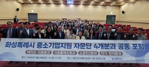 [½Åµ¿¾Æ¹æ¼Û=ÀÌÀçö±âÀÚ] È­¼ºÆ¯·Ê½Ã´Â Áß¼Ò±â¾÷Áö¿ø ÀÚ¹®´Ü(À§¿øÀå ±èÀåÇö)ÀÌ 24ÀÏ È­¼ºµ¿Åº2ÀÎÅ¥º£ÀÌÆÃ¼¾ÅÍ 3Ãþ ÄÁÆÛ·±½ºÈ¦¿¡¼­ ¡®4°³ ºÐ°ú °øµ¿ Æ÷·³¡¯À» °³ÃÖÇß´Ù°í ¹àÇû´Ù. À̹ø Æ÷·³Àº ¹ÙÀÌ¿À¡¤ÀÇ·áºÐ°ú, ½Ä·áǰÁ¦Á¶ºÐ°ú, ¼Ò°øÀÎ2ºÐ°ú, Àü±â¡¤ÀüÀںаú°¡ ÇÔ²² ¡¦