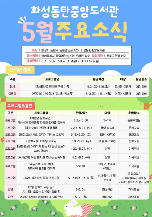 È­¼ºµ¿ÅºÁß¾Óµµ¼­°ü, ¡®¾î¸°À̳¯ ¹× °¡Á¤ÀÇ ´Þ¡¯ ¸Â¾Æ 5¿ù ´Ùä·Î¿î ¹®È­Çà»ç °³ÃÖ